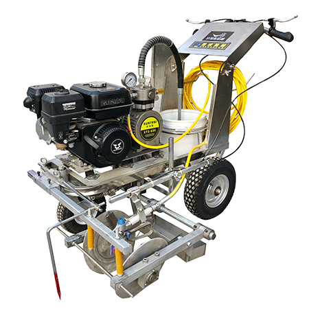首先說冷噴劃線機,它是一種高壓力等流量型無氣噴涂機,它的設計非常合理,噴槍架導向桿升降設計,可以更為準確的調節噴涂寬度,劃線均勻,劃線下效果好,施工快捷方便。